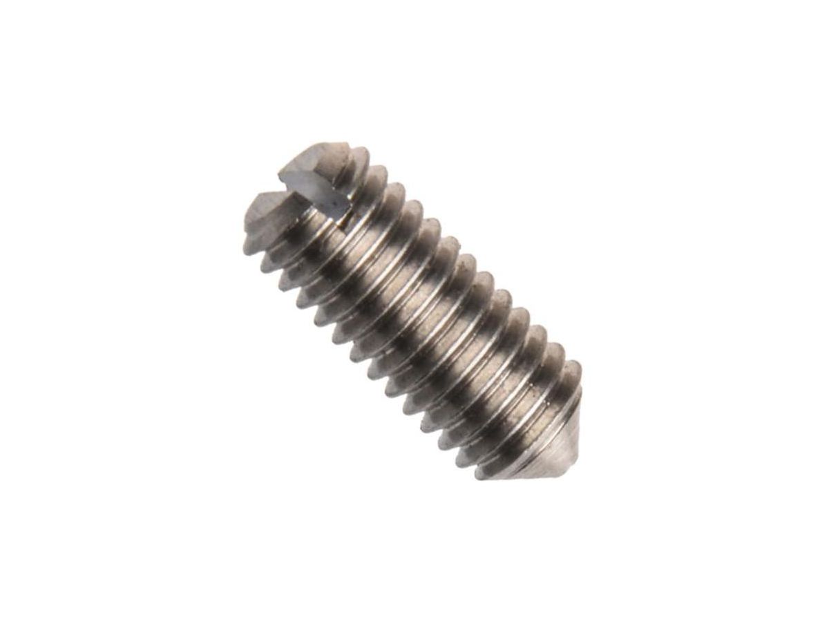 Din 553 (iso 7434), stavěcí šroub (červík) s rovnou drážkou a hrotem, ocel třídy 4.6 (4.8), bez povrchové úpravy, m3x8 mm