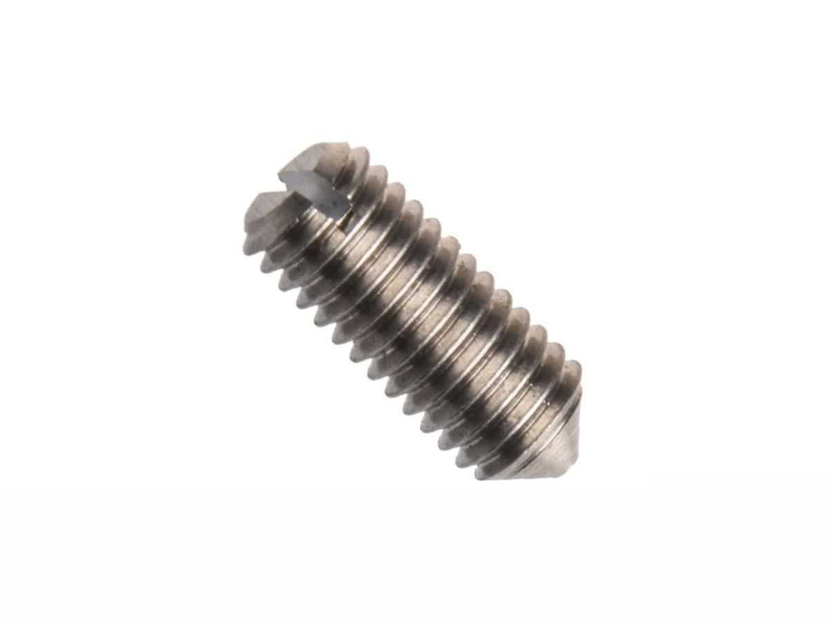 BMKcoDin 553 (iso 7434), stavěcí šroub (červík) s rovnou drážkou a hrotem, ocel třídy 4.6 (4.8), zinek bílý, m5x6 mm