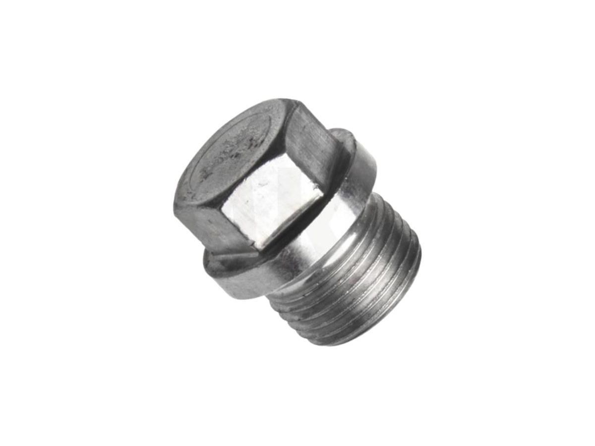 Din 910, šroub (zátka) vypouštěcí se šestihrannou hlavou a nákružkem, metrický jemný válcový závit, ocel 5.8, m14x1.5