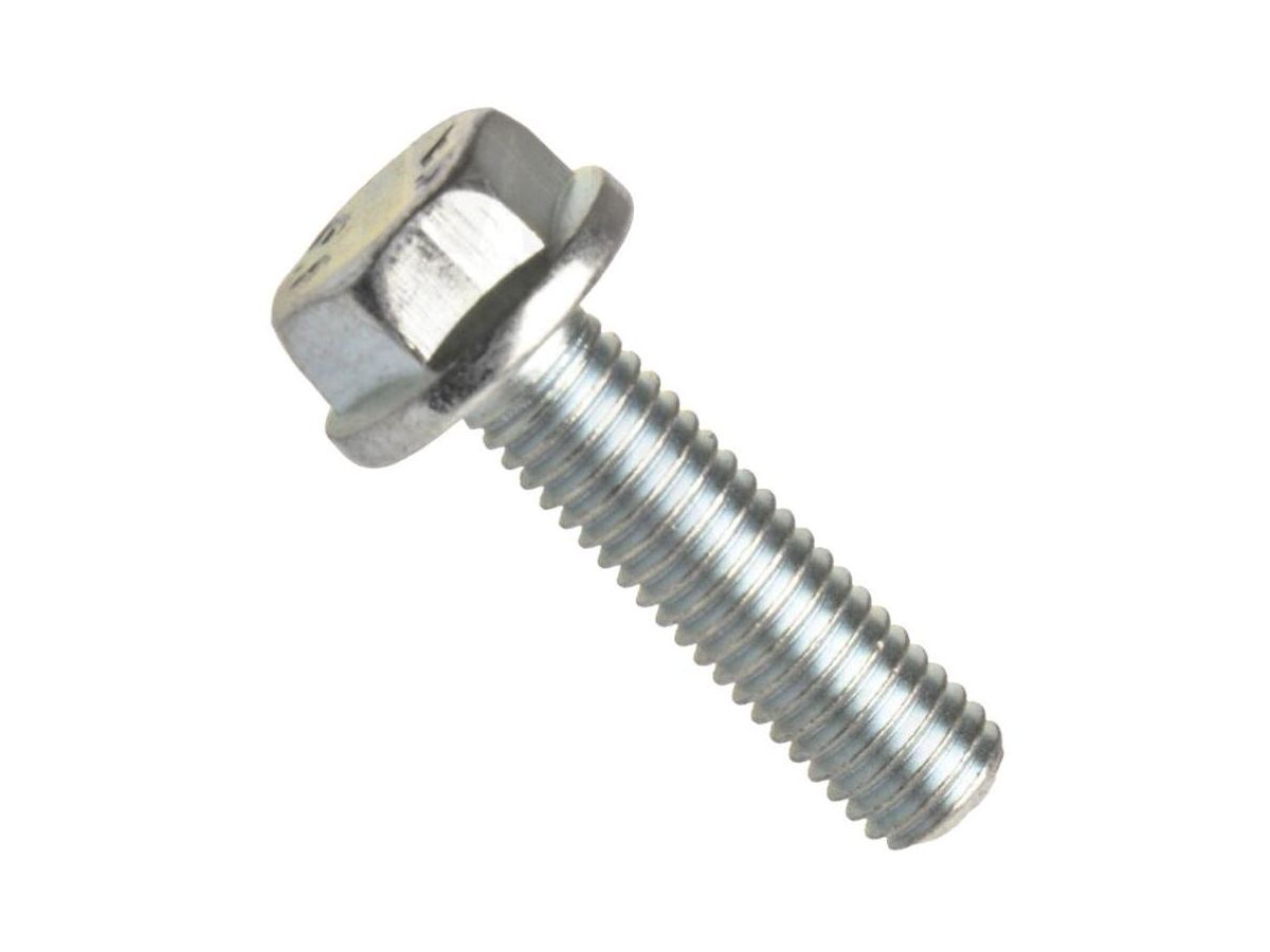 Šroub pojistný "ripp" se šestihrannou hlavou s ozubeným límcem (přírubou), r 88913, celý závit, ocel kl. 100, zinek bílý, m6x16