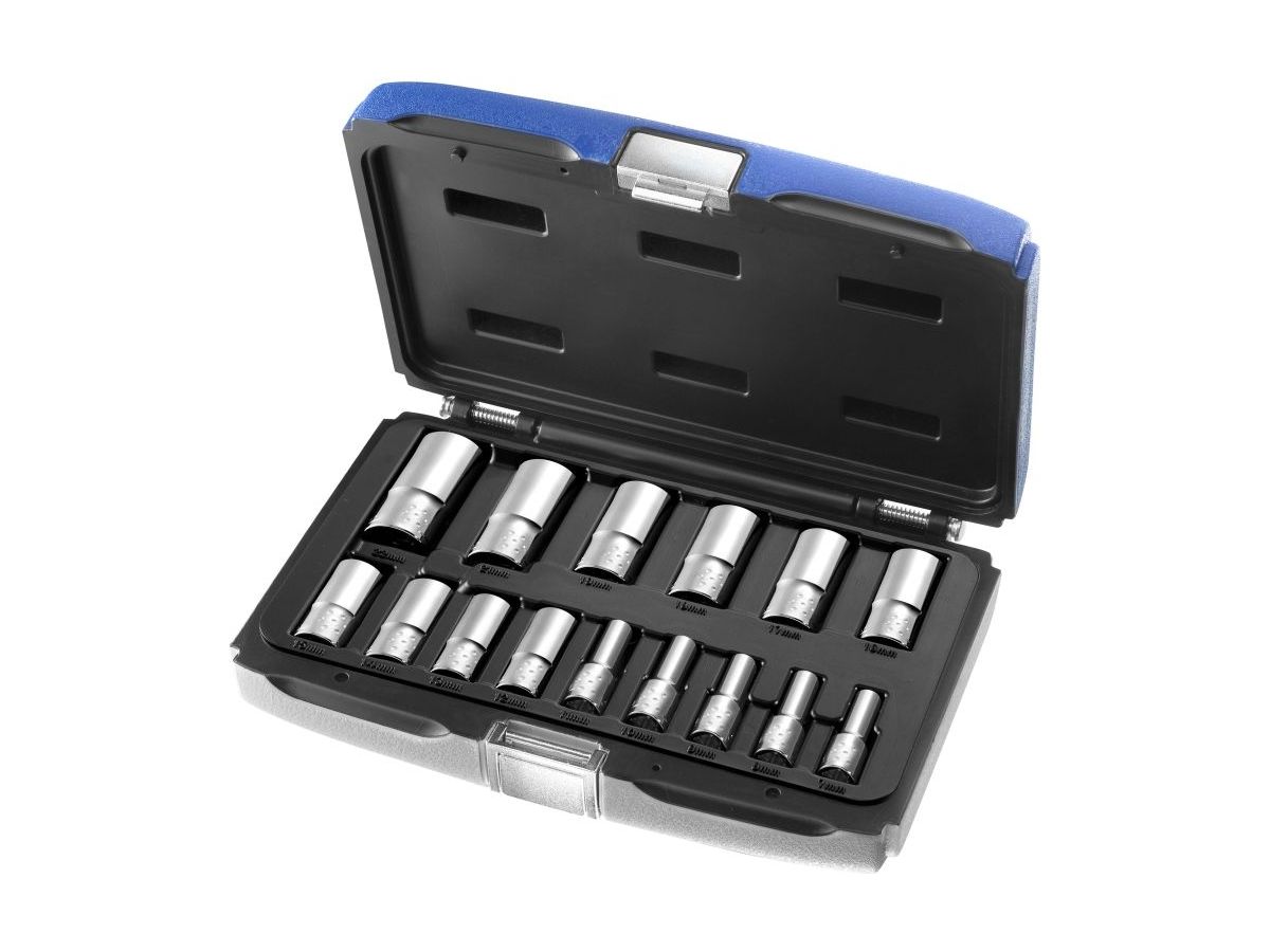 Obsah sady: 6hranné prodloužené hlavice: 7-8-9-10-11-12-13-14-15-16-17-18-19-21-22 mm.