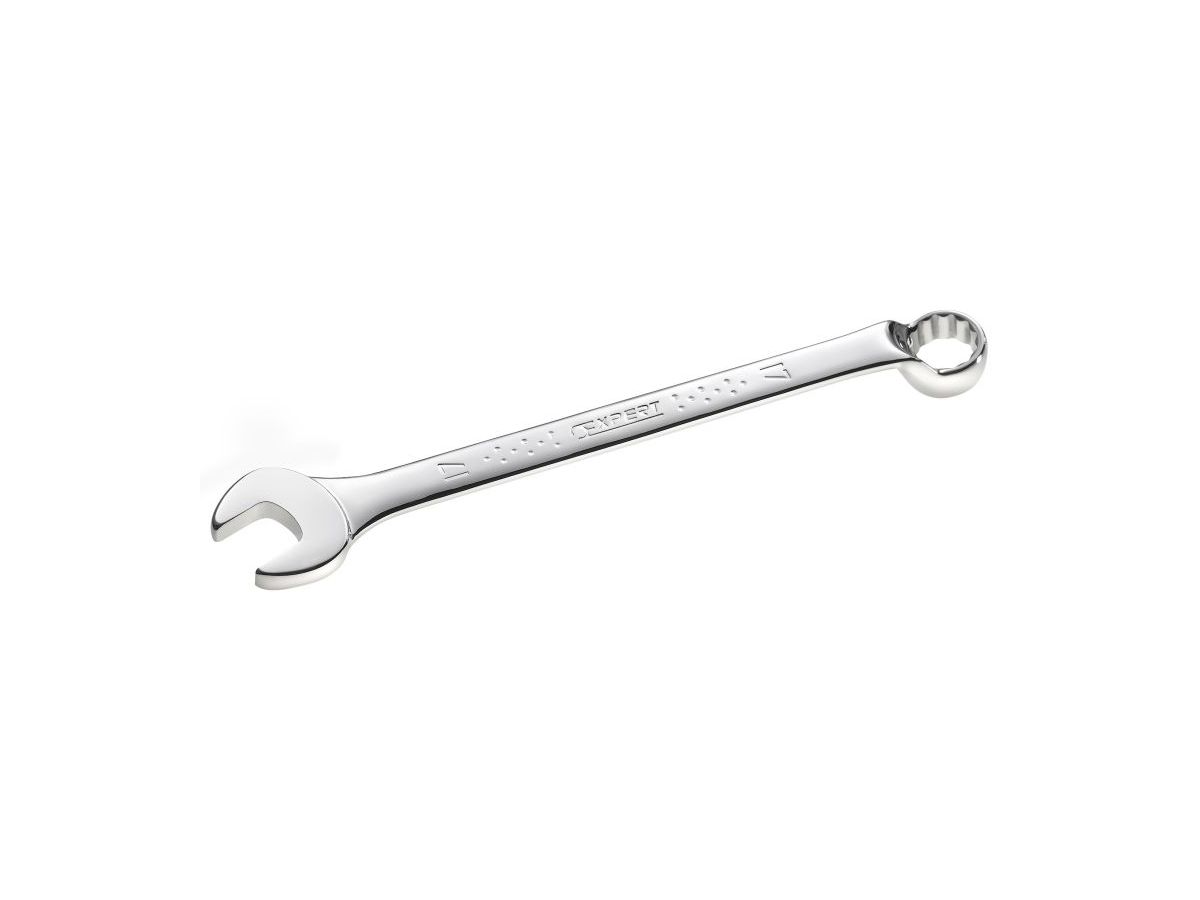12hranné očko vyhnuté 75°.Ústí klíče vykloněné o 15° od osy těla klíče (pracovní úhel 30°). Profil očka zajišťuje maximální styčnou plochu přenosu síly na matice pro prodloužení životnosti klíče. Vykované z chrom-vanadové oceli.Chromovaný leštěný povrch. L: 172 mm.