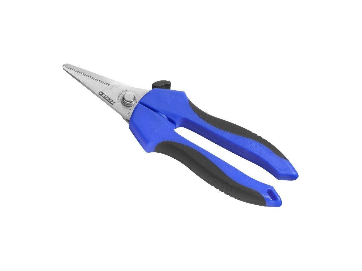 Poznámka: Výkonné nůžky pro stříhání různých materiálů: kartónu, pryže, PVC, kůže do 5 mm, tenkého plechu, elektrických kabelů apod. Bezpečné: čelisti lze zajistit v uzavřené poloze. Pohodlné bimateriální rukojeti. Délka ostří 58 mm.
