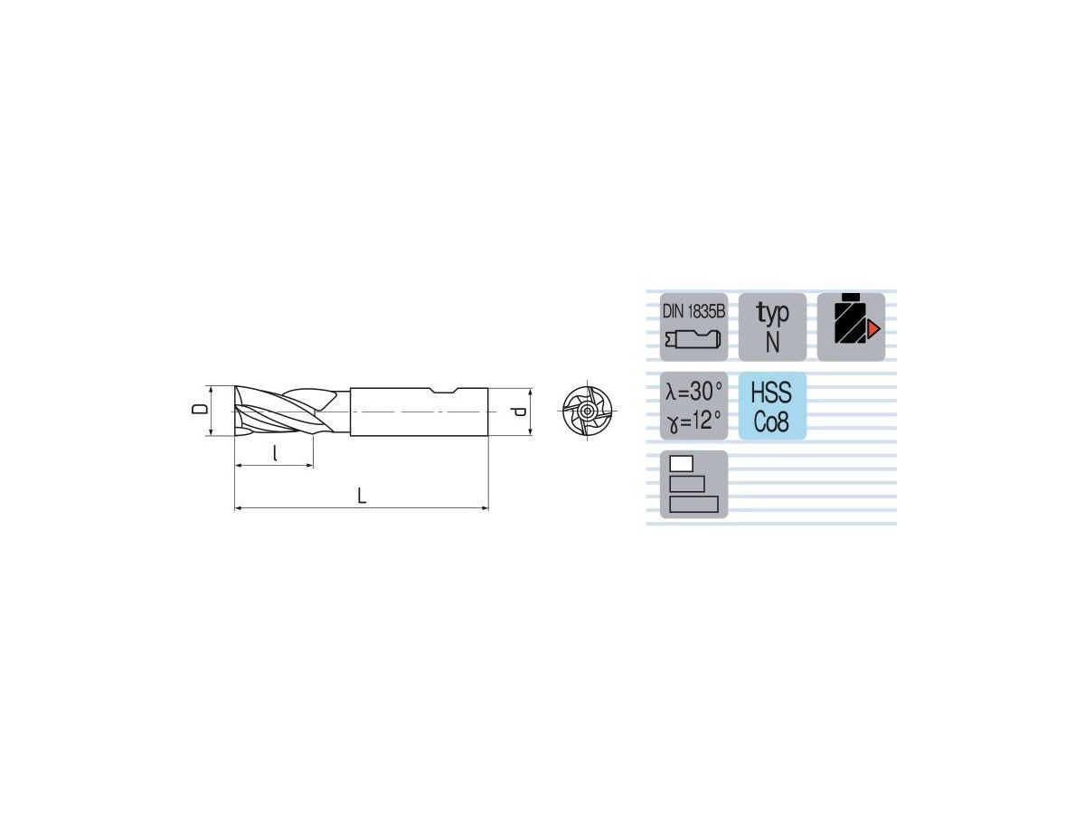 Fréza válcová čelní extra krátká typ N F120218K - ZPS