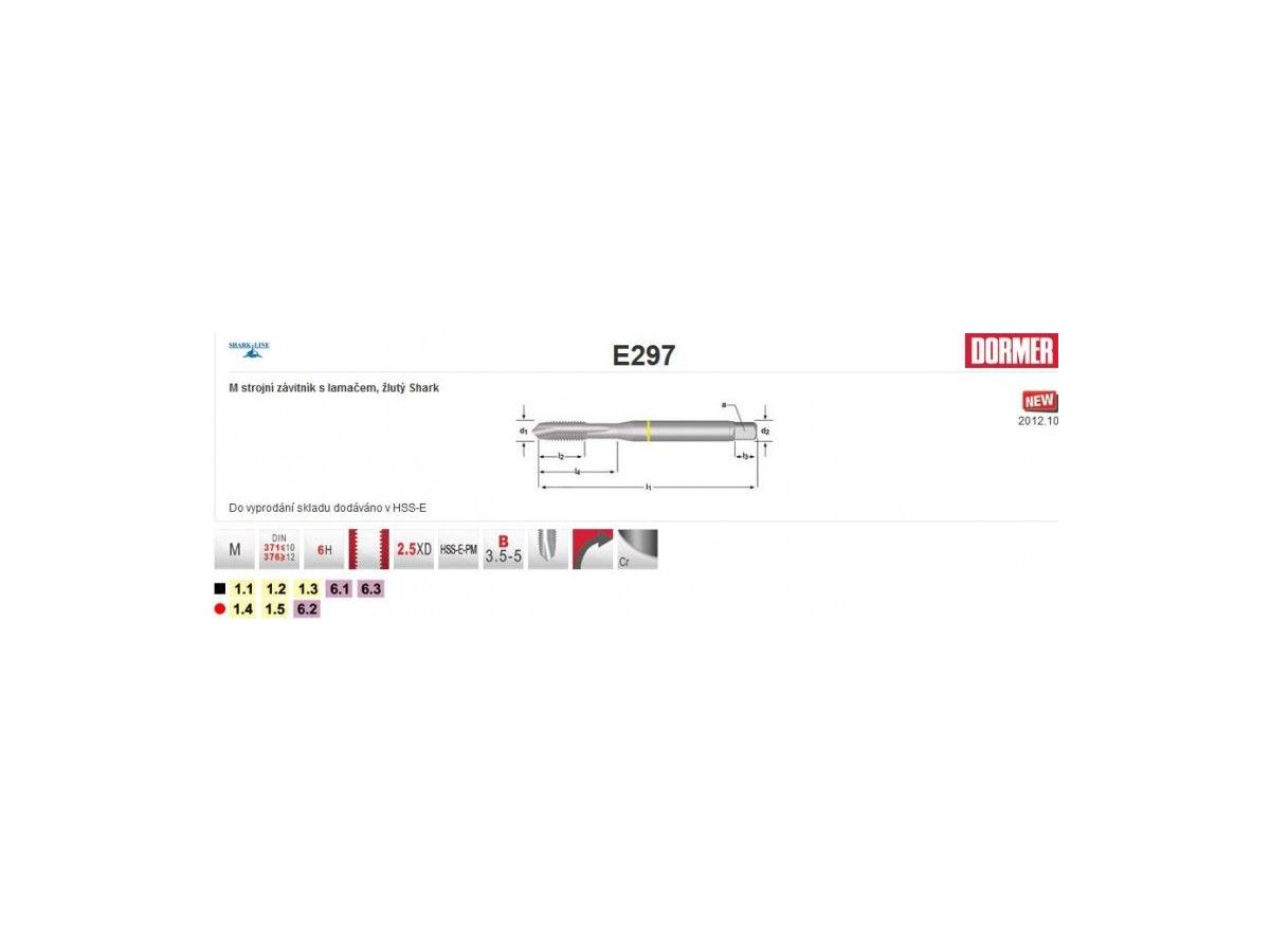 DORMERStrojní závitník SHARK, lamač, DIN376, HSS-E-PM, Cr. Pro materiály skupiny "P" - ocel.