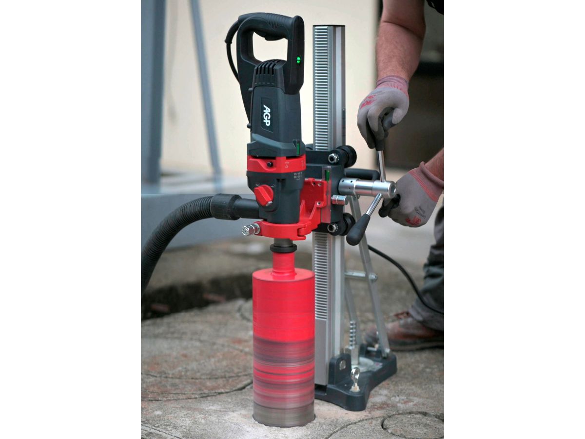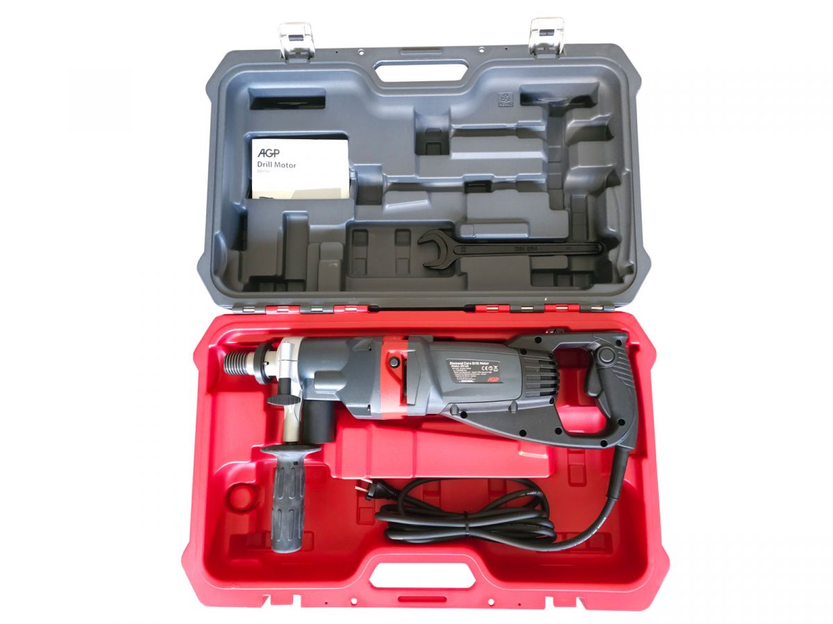 Kompaktní, lehký a přesto robustní vrtací motor, to je elektrická diamantová jádrová vrtačka AGP DD160 pro ruční jádrové vrtání do železobetonu až 162 mm a cihel až 262 mm. Vrtačka je určena pro suché jádrové vrtání s možností vrtání s mikropříklepem. Mikropříklep lépe odvádí nečistoty z vrtacích korunek a zvyšuje tak jejich životnost a má větší efektivitu při vrtání. Díky velmi jednoduché konstrukci ve tvaru D, otočné rukojeti a nízké hmotnosti budete méně unavení při dlouhodobé práci.