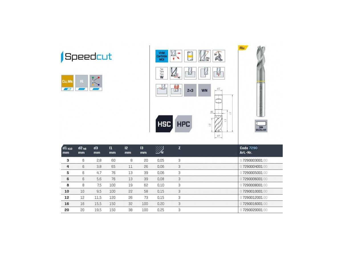 - Fréza SK válcová čelní extra dlouhá - SPEEDCUT Alu, Z=3, 34-38°, DIN 6535-HA