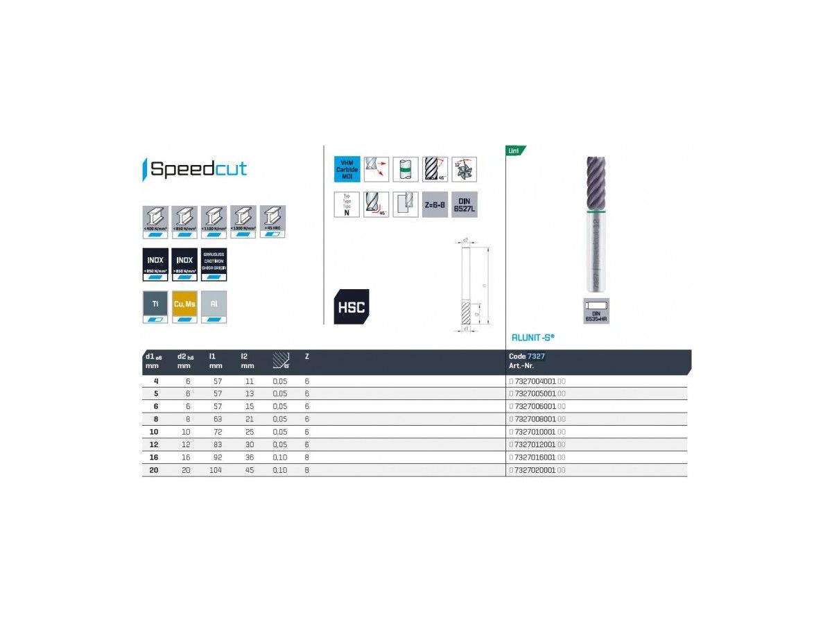 - Fréza SK válcová dokončovací dlouhá - SPEEDCUT Uni, Z=6, 45°, DIN 6535-HA, ALUNIT-S