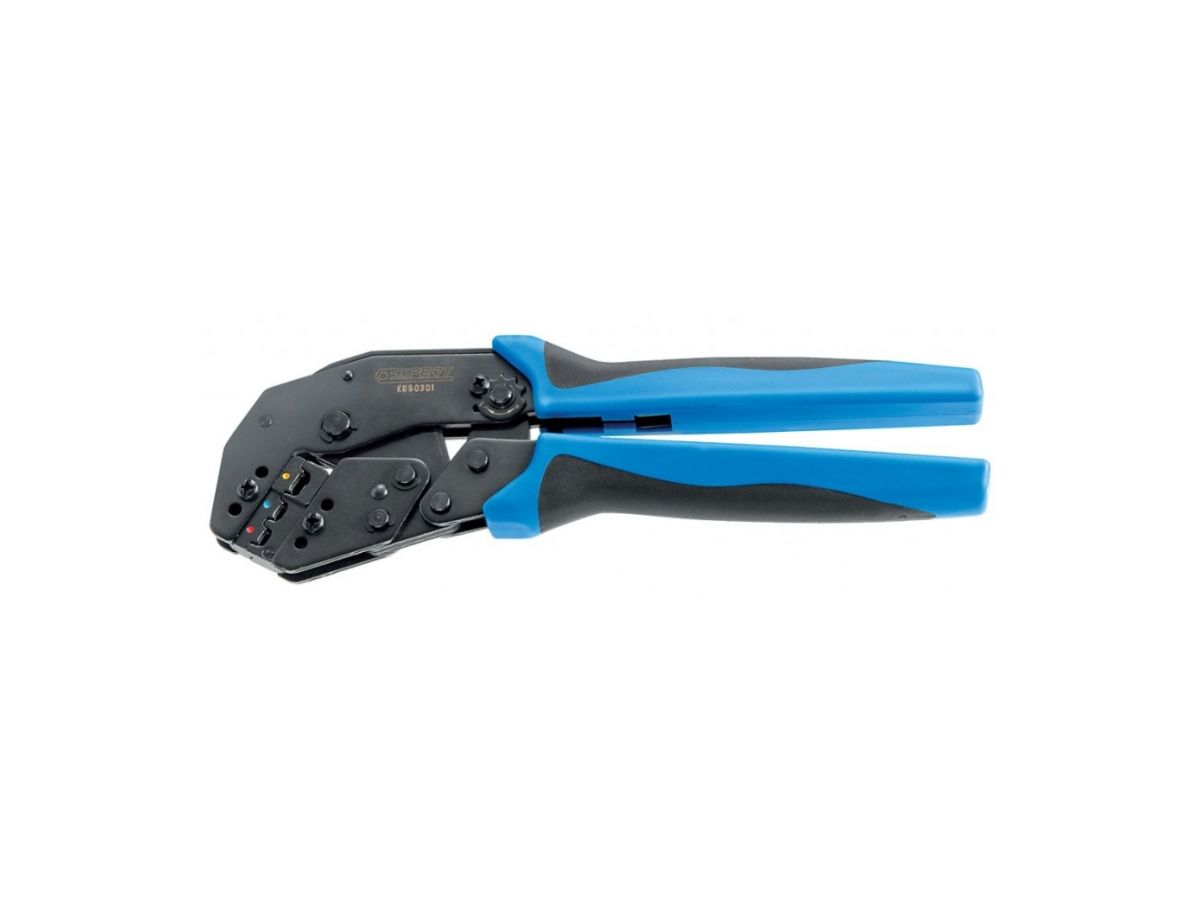 Poznámka: Pro lisování předizolovaných koncovek s průřezem kabelu: od 0,4 do 1 mm2 (červené) od1,5 do 2,5 mm2 (modré) od 4 do 6 mm2 (žluté) Testovány pro výdrž minimálně 25 000 cyklů Ráčnový systém nedovolí uvolnit sevření kleští dokud není koncovka zalisována dostatečnou silou Pohodlné, opláštěné rukojeti.