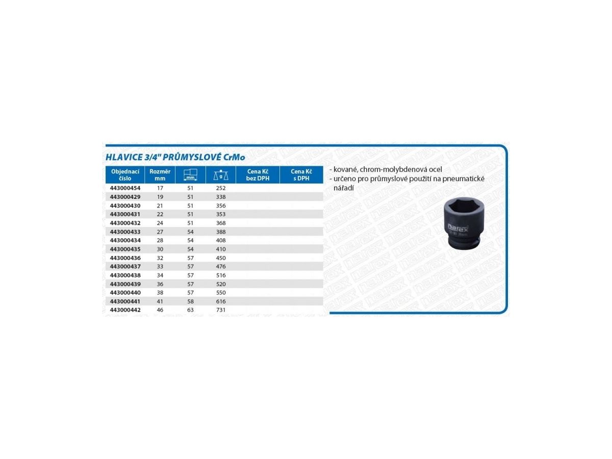 Průmyslová hlavice 3/4"-CrMo NAREX HL-3/4"