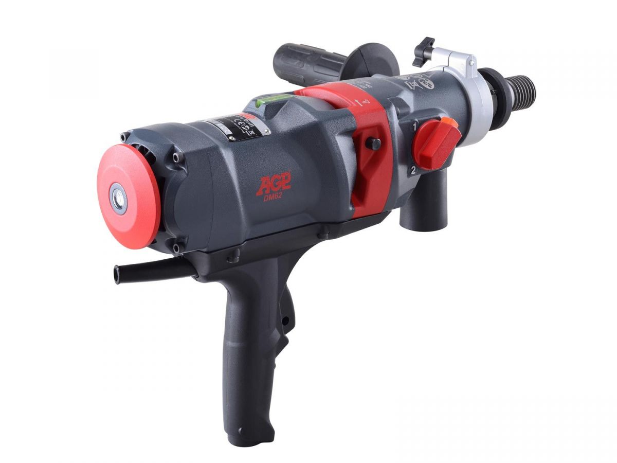 Profesionální, kompaktní a lehká elektrická diamantová jádrová vrtačka DM62 pro ruční jádrové vrtání chemických kotev ke kotvení a otvorů na výztuže o průměrech do 262 mm. Tato diamantová jádrová vrtačka je určena pro suché jádrové vrtání zdiva, betonu, železobetonu, přírodního kamene i cihel. Díky velmi jednoduché konstrukci pistolového tvaru, otočné rukojeti a nízké hmotnosti budete méně unavení při dlouhodobé práci. Přednost využití je tam, kde nemůžete použít mokré vrtání (vrtání vzhůru nohama, mrazivé a špatné povětrnostní podmínky...).