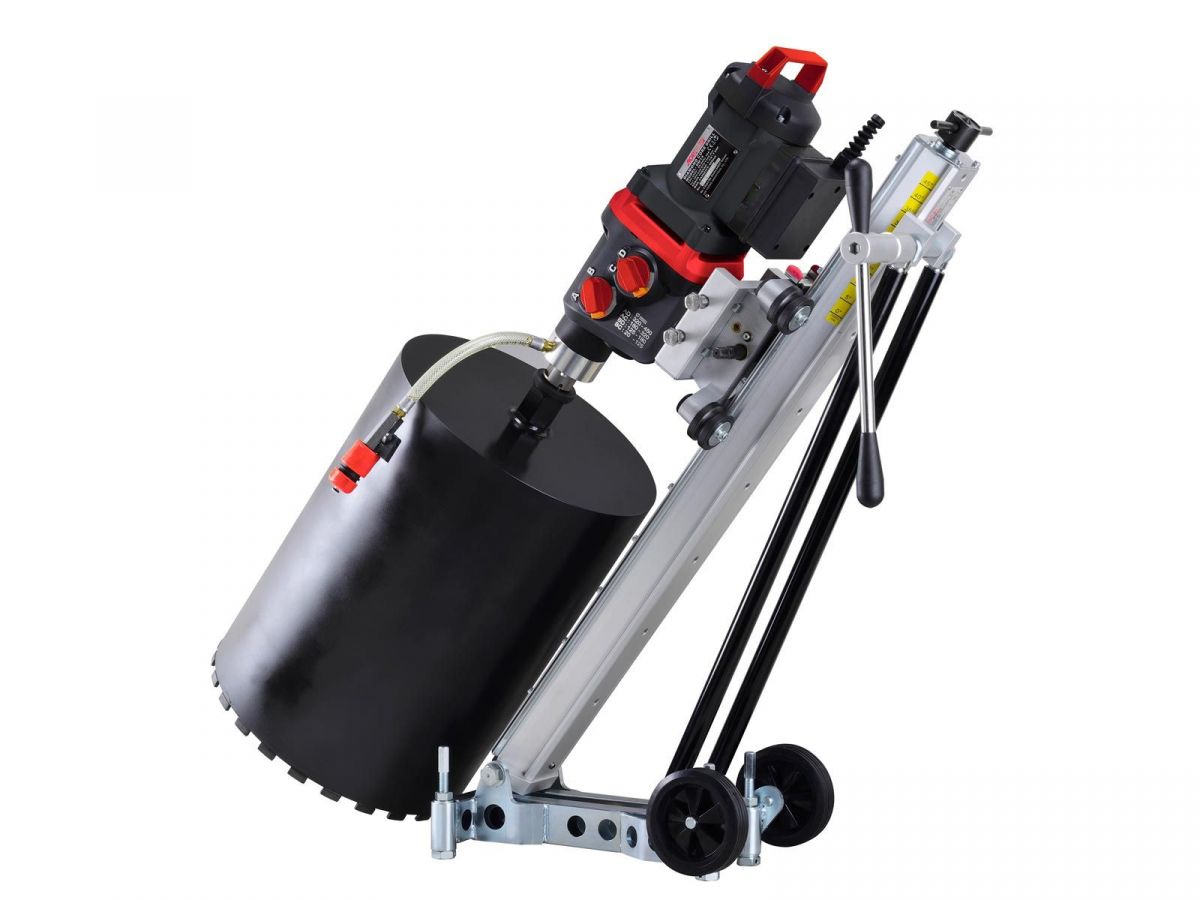 Samozřejmostí je možné upnout vrtačku do stojanu (např. S350, S500, S800) a tím zvýšit průměr, stabilitu a přesnost samotného vrtání. U této verze je pak možné zvýšit průměr vrtání o dalších 80 mm pomocí "40 mm distanční sady" (volitelné příslušenství). Nebo je možné u vybraných stojanů zvýšit pomocí "distančních podložek" průměry vrtání až do 800 mm!