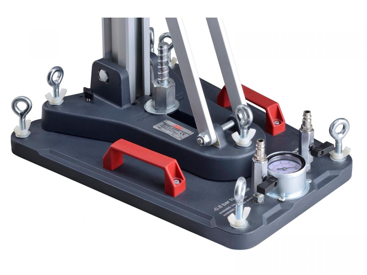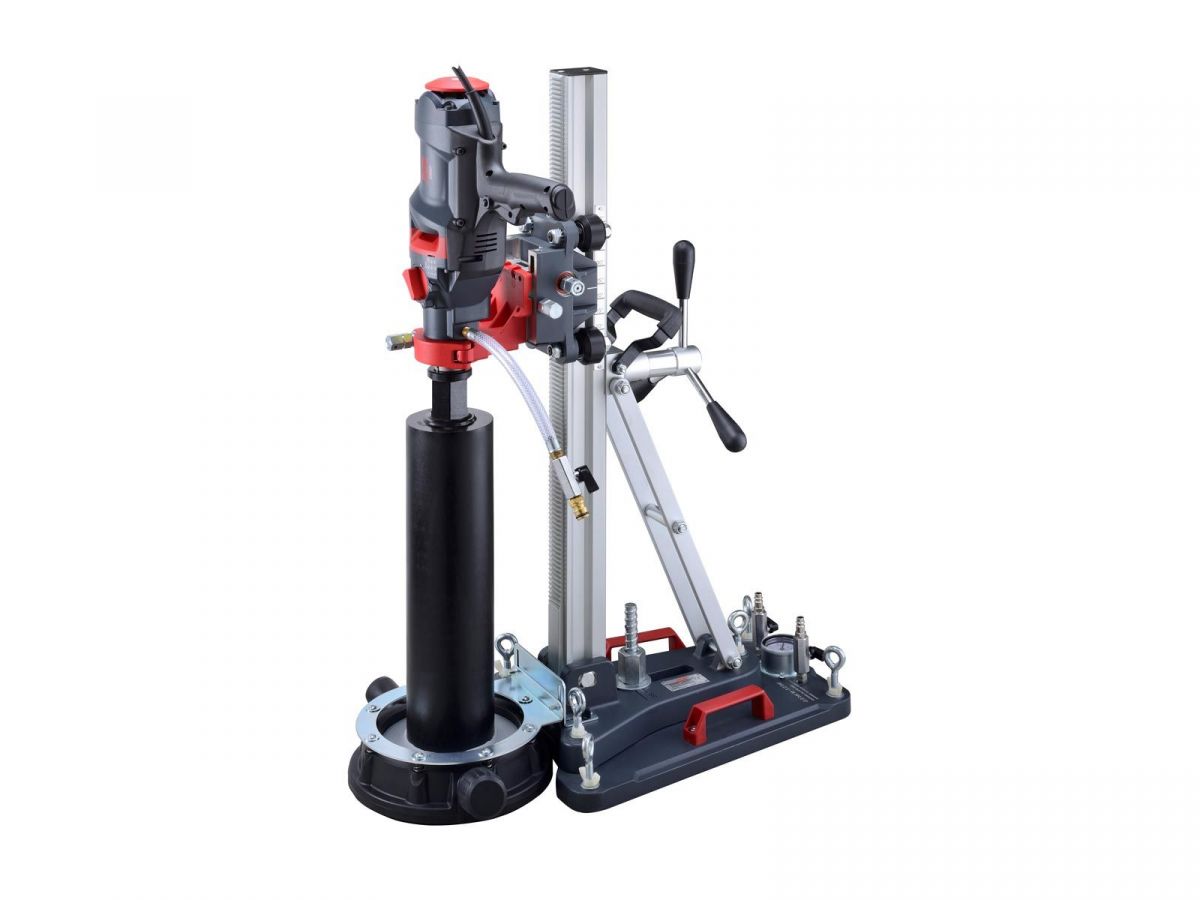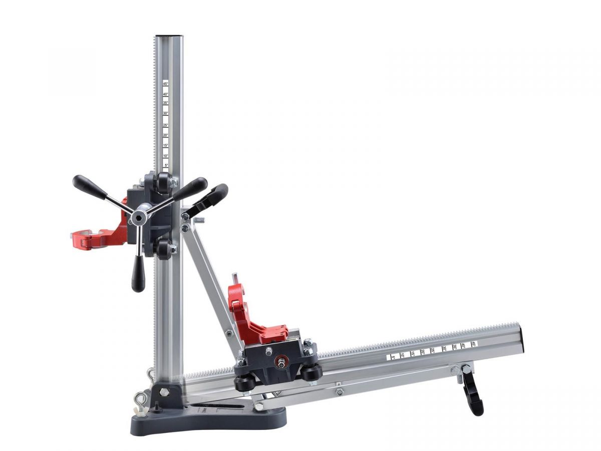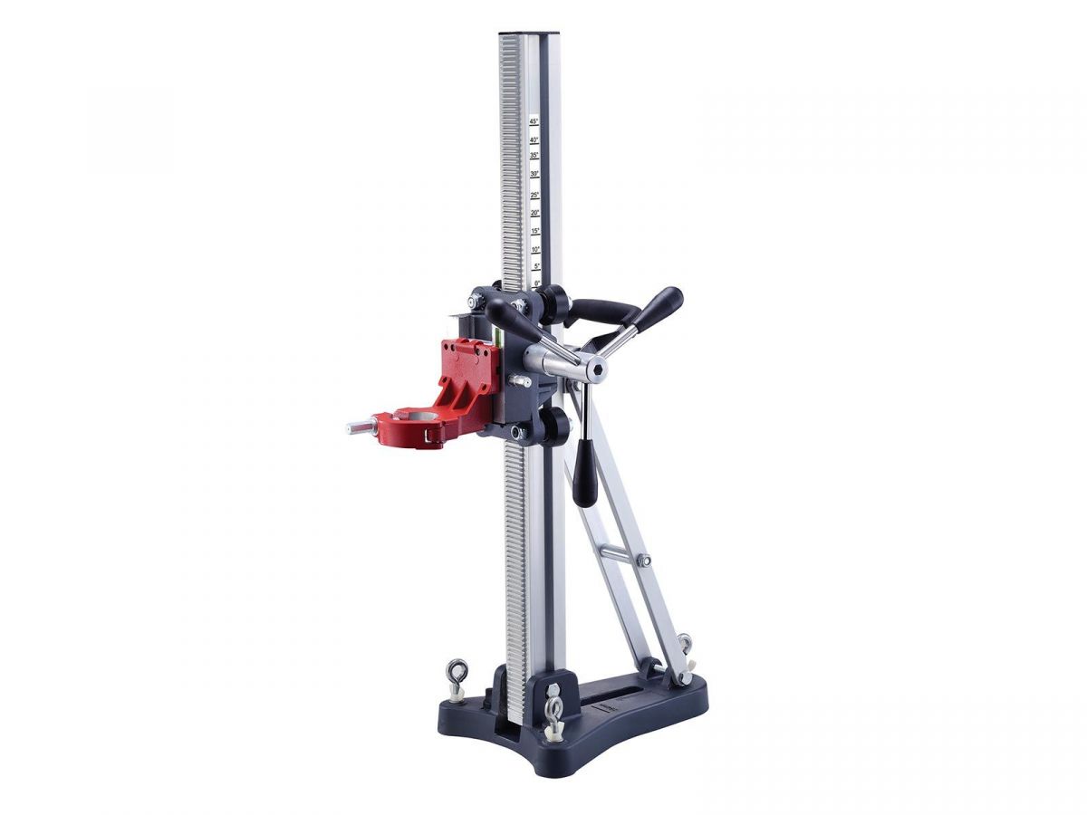 Konstrukce stojanu je vyrobena z hliníku tak aby zajistila co nejmenší váhu v poměru vysoké tuhosti a eliminaci vibrací, využívá přesné vedení válečků s jemným nastavením a má ruční kliku, která může být také použita jako klíč. Stojan obsahuje rychloupínací svorku pro snadnou instalaci vrtačky.