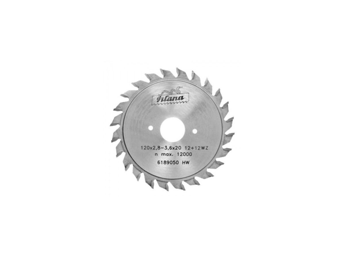 Předřezávací pilový kotouč - dvoudílný - pro docílení vyšší kvality řezu na spodní ploše oboustranně povrchově upravovaných materiálů. (Laminované dřevotřískové desky apod.)